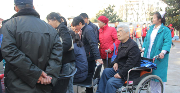 长江医院的小护士,颜值与道德同在,一位坐着轮椅的老爷爷在排队等候,小护士看到了,马上前去帮忙。